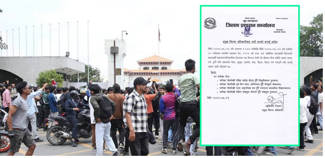 प्रदर्शन अनियन्त्रित भएपछि काठमाडौंमा कर्फ्यू आदेश जारी भएको छ । मध्यान्ह १२ बजेटबाट राती १० बजेसम्मका लागि बानेश्वर क्षेत्र, सिंहदरबार, राष्ट्रपति निवास वरपर कर्फ्यू लगाइएको छ ।