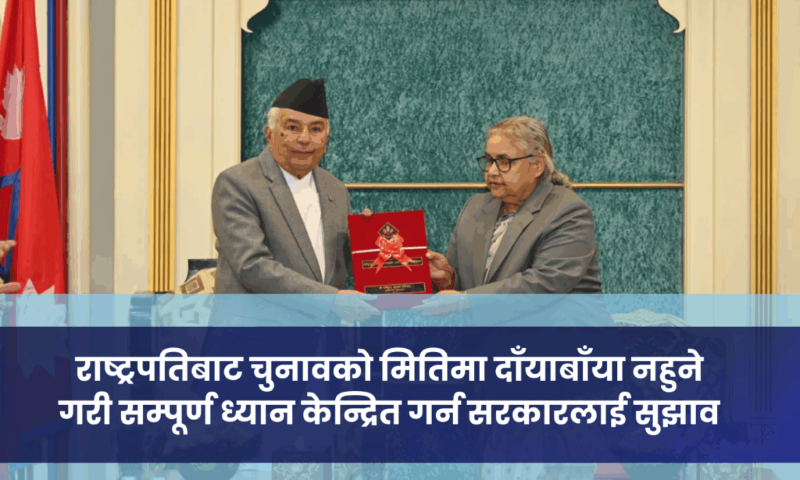 काठमाडौं, २९ मंसिर – राष्ट्रपति रामचन्द्र पौडेलले प्रतिनिधिसभाको फागुन २१ गतेको निर्वाचनको मितिमा दाँयाबाँया नहुने गरी सम्पूर्ण ध्यान चुनावमा केन्द्रित गर्न सरकारलाई सुझाव दिएका छन् । राष्ट्रपति भवन शीतल निवासमा आइतबार आयोजित कार्यक्रममा राष्ट्रिय सुरक्षा परिषद्को आर्थिक वर्ष २०८१÷२०८२ को वार्षिक प्रतिवेदन बुझ्दै राष्ट्रपति पौडेलले यस्तो सुझाव दिनुभएको उहाँका प्रेस सल्लाहकार किरण पोखरेलले जानकारी दिए ।