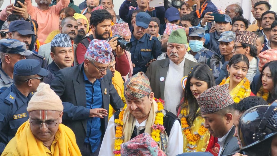 सोमबार दिउँसो जानकी मन्दिर पुगेका पूर्वराजा परिवारलाई समर्थकहरूले स्वागत गरेका थिए । जानकी मन्दिरमा पूजा गरेपछि पूर्वराजा शाह करिब आधा किलोमिटर पैदल यात्रा गर्दै राम मन्दिर पनि पुगेका थिए ।